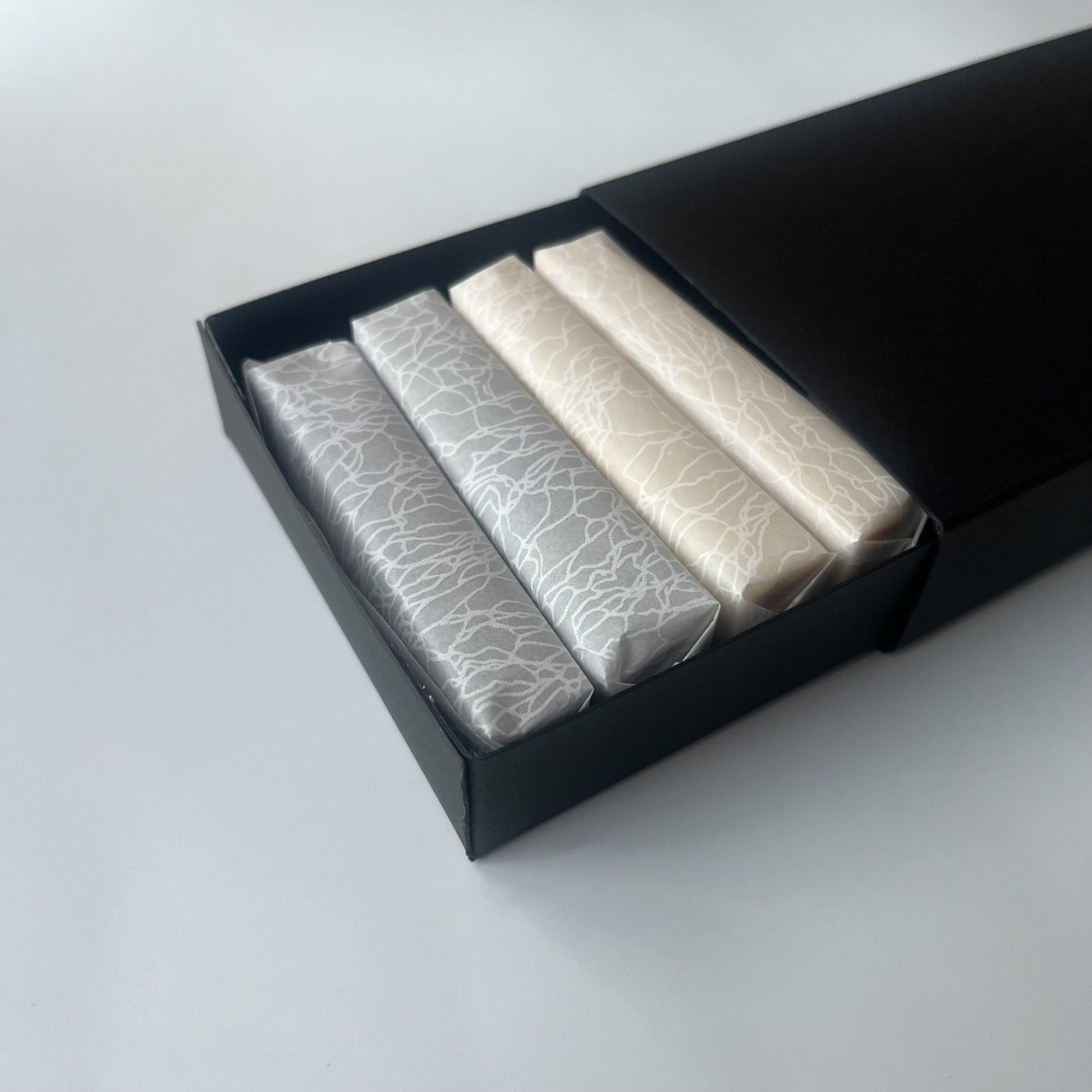 包むだけではなく、高級チョコレートの箱の上にふわりとのせてみる、また包装の掛け紙の一部としてカットして使用しても素敵です。