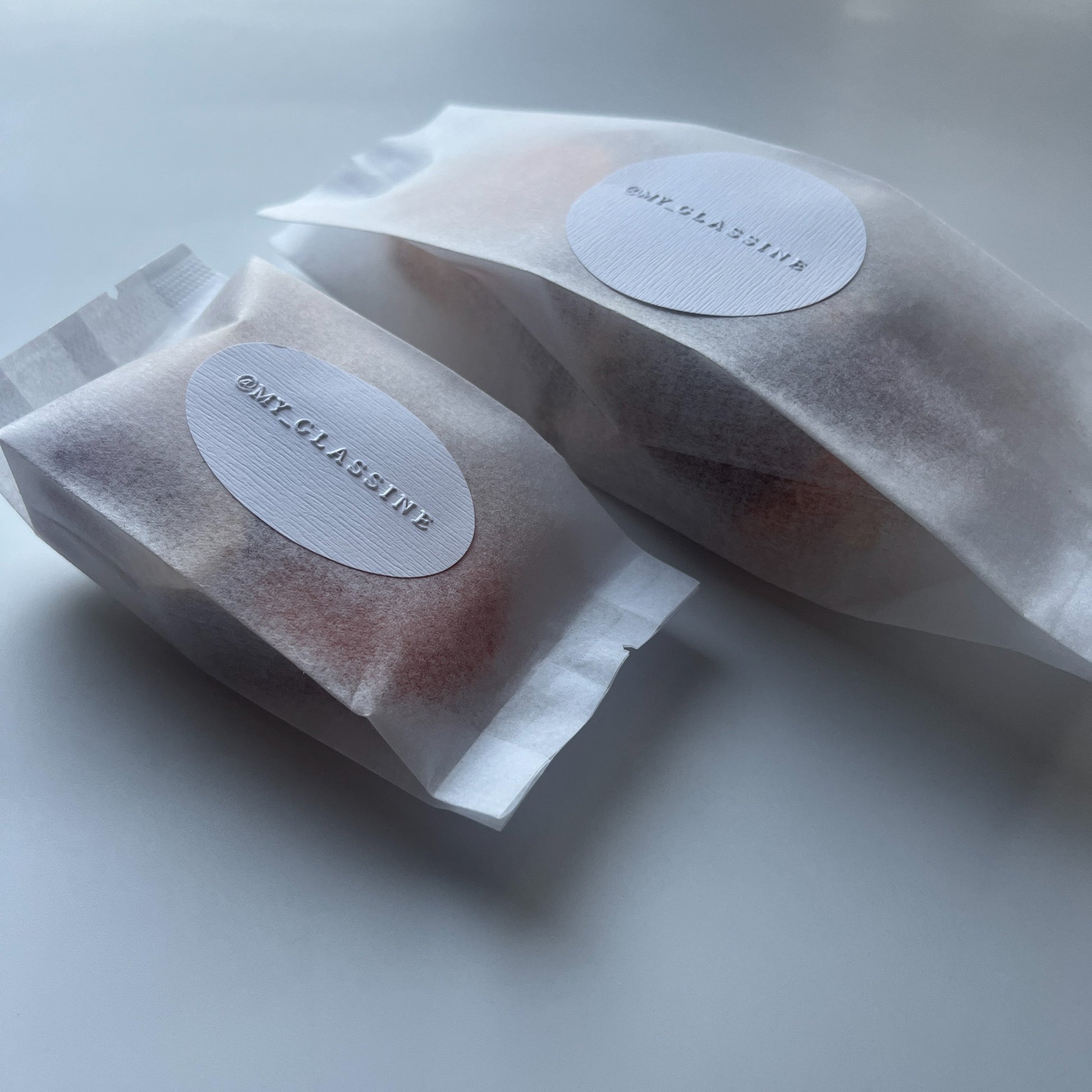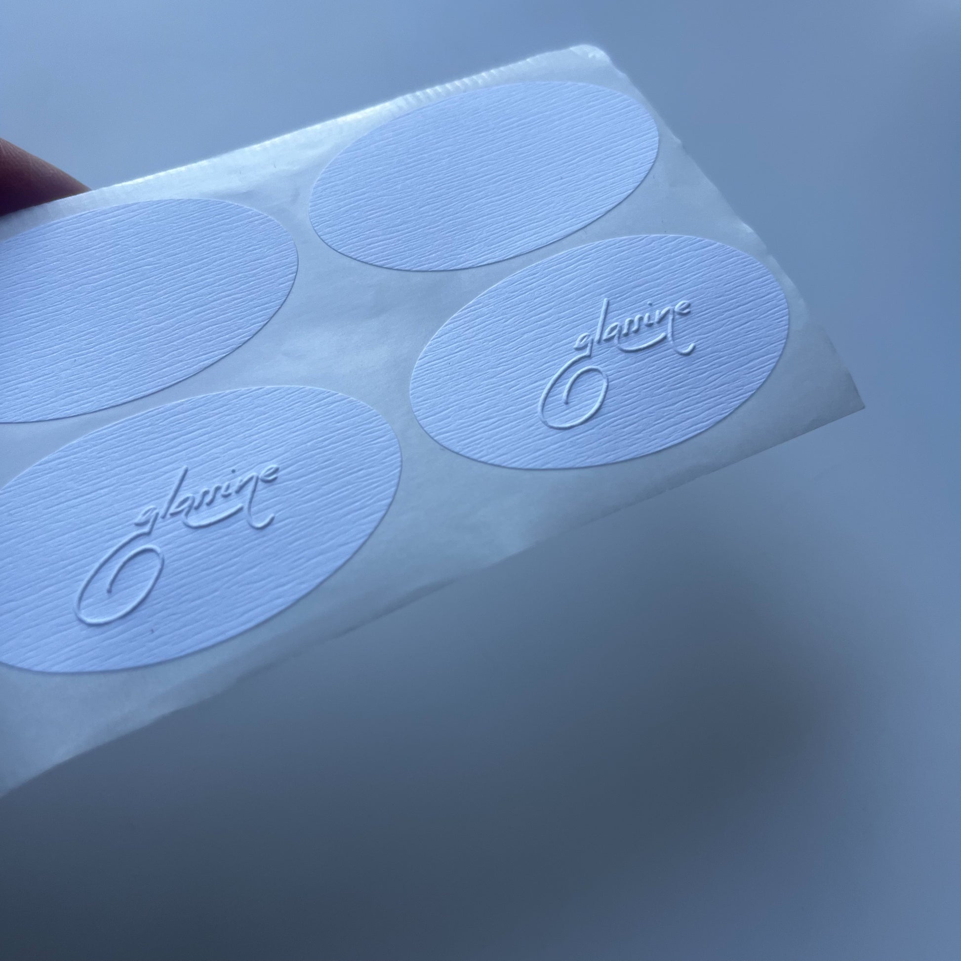 またエンボッサーを押した時にうっすら木目調があることでシールに奥行きがでます。