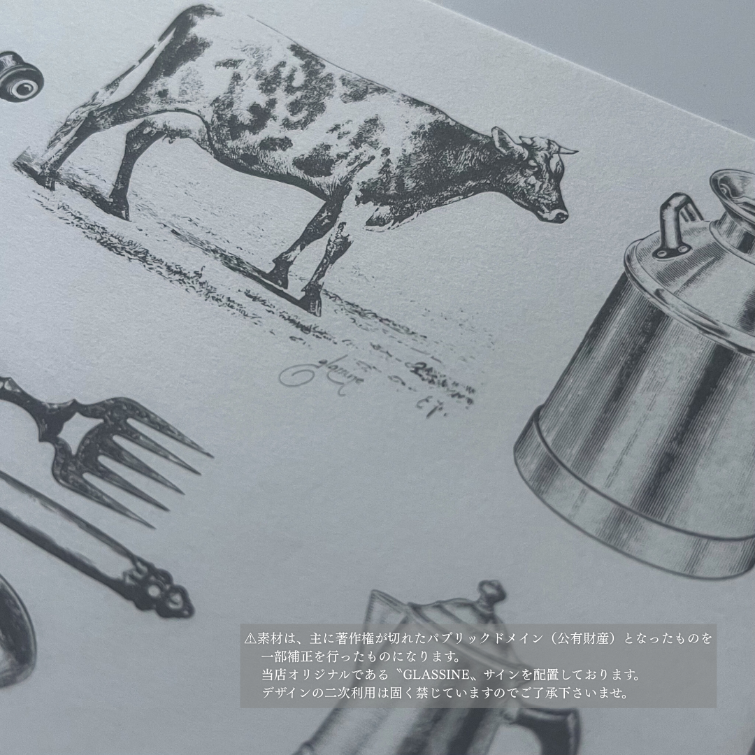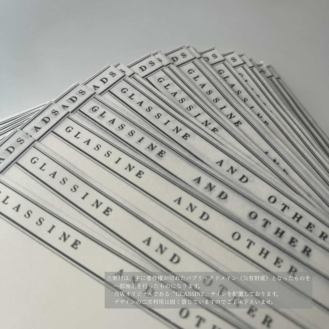 商品にはすべて当店オリジナルである〝GLASSINE〟サインを配置しております。
