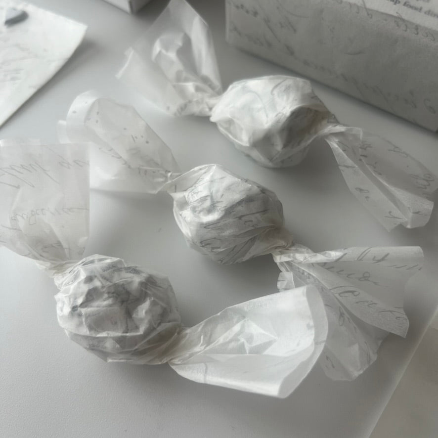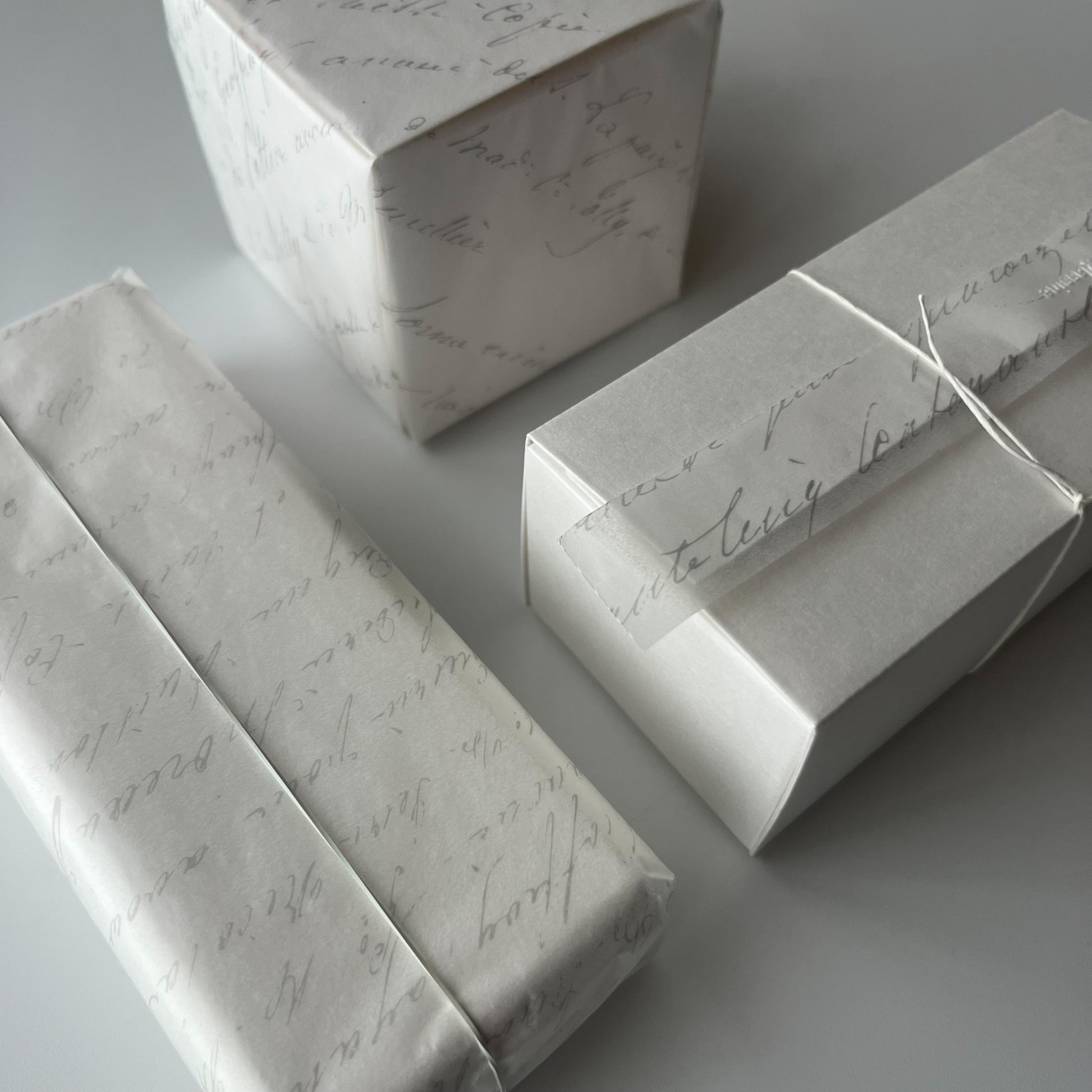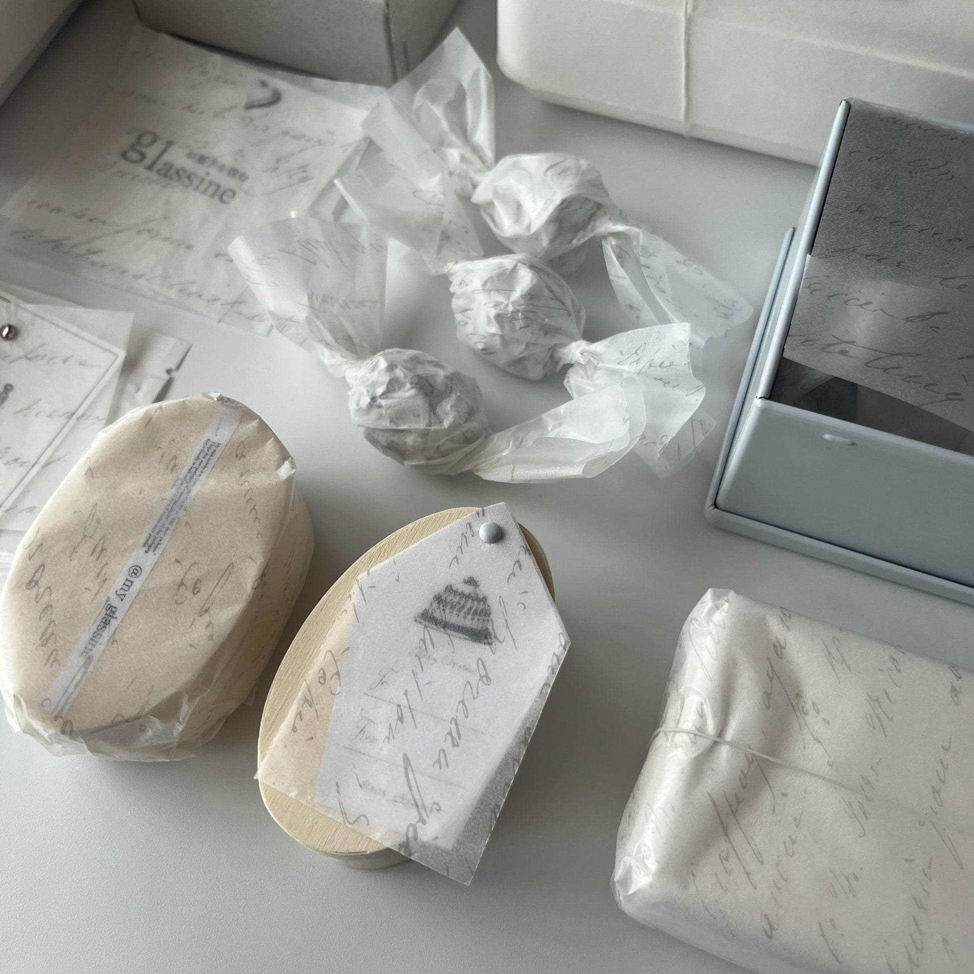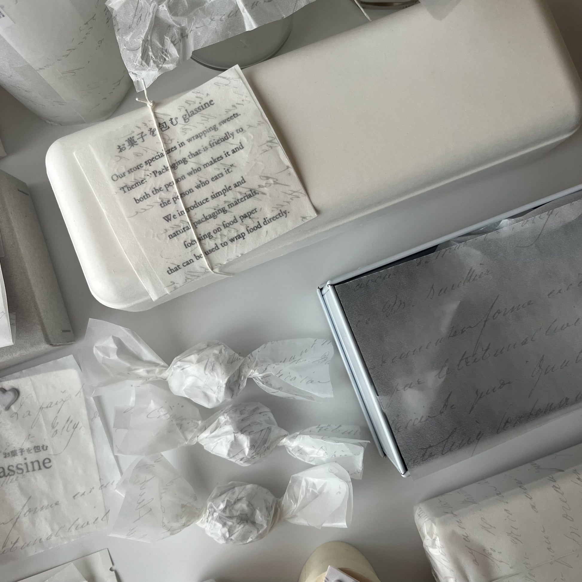 不透明なペーパーとは違い、少し奥にあるモノの表情を柔らかく伝えてくれます。極薄なペーパーなので小さなものでもごわつくことなく綺麗に包めます。