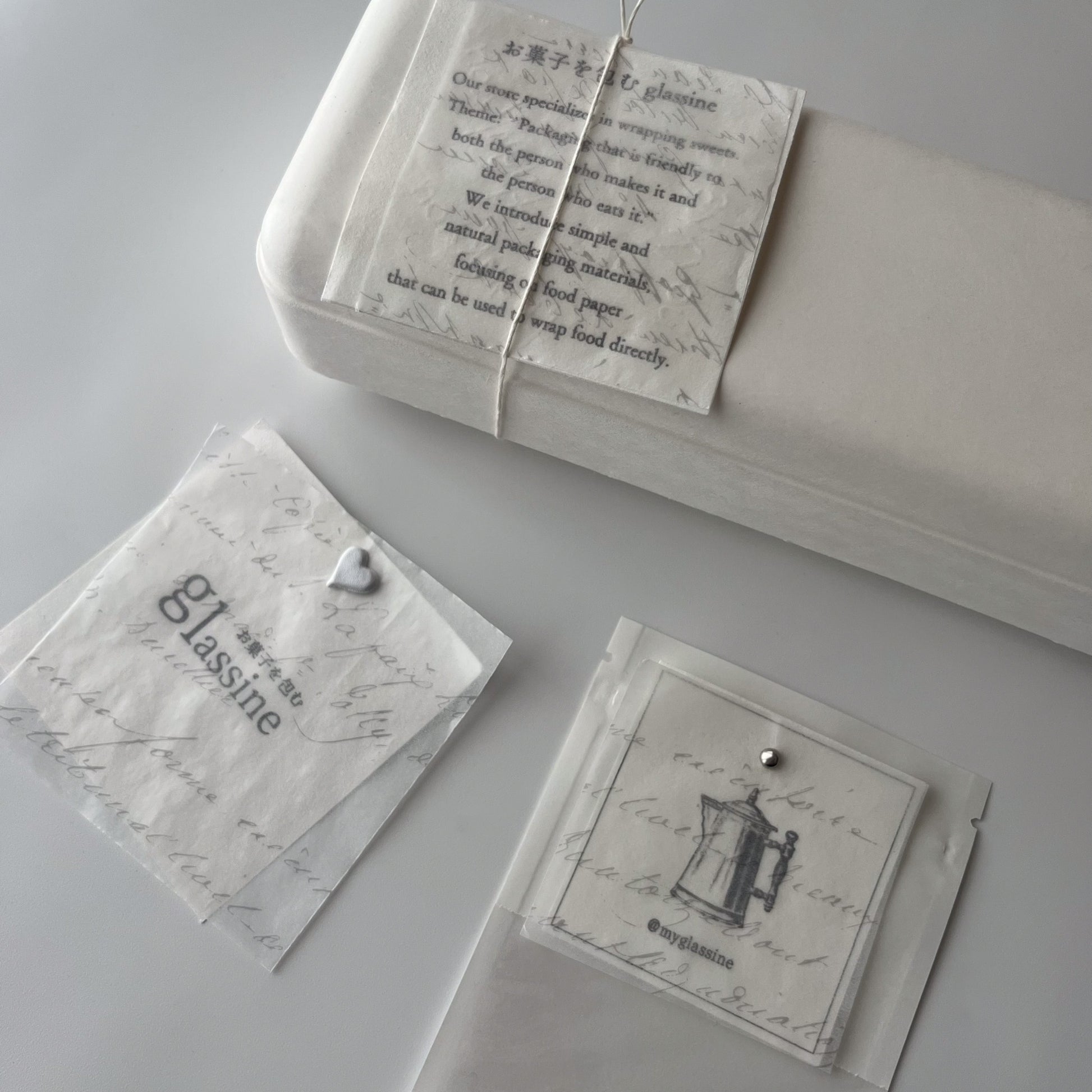◯グラシン紙は湿度の影響を受けやすく、配送時や納品後の湿度の変化により”反り返り”や”シワ”が発生する場合があります。予めご了承ください。