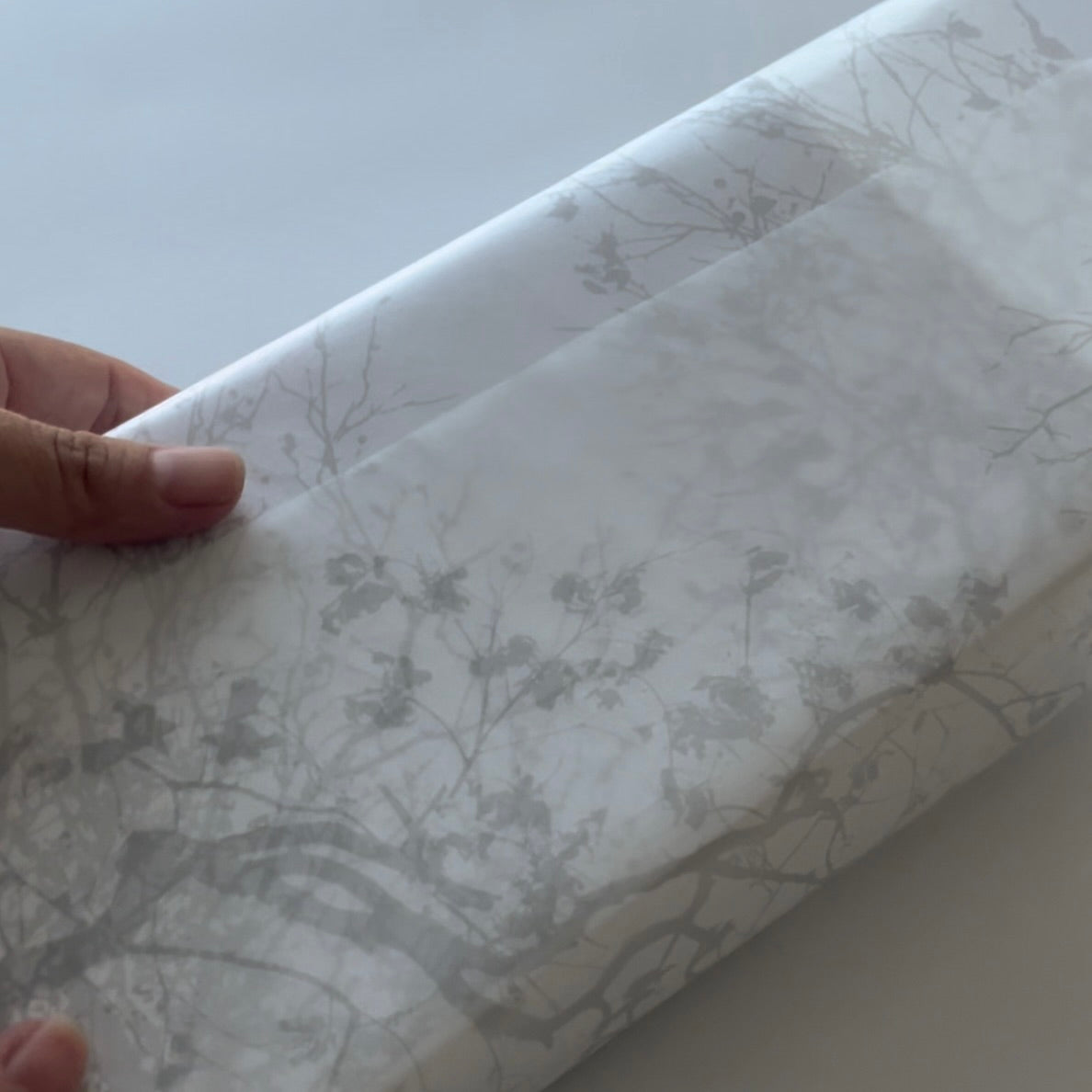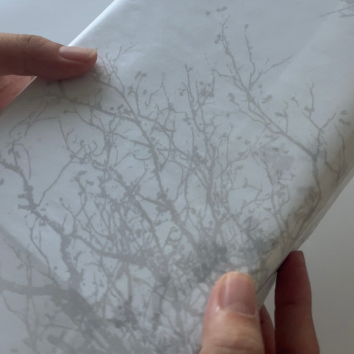 イラストがうっすら透けるすりガラスのようなデザインなので強調しすぎることなく、包む又は合わせるものによって表情を変える影のようなイメージです。