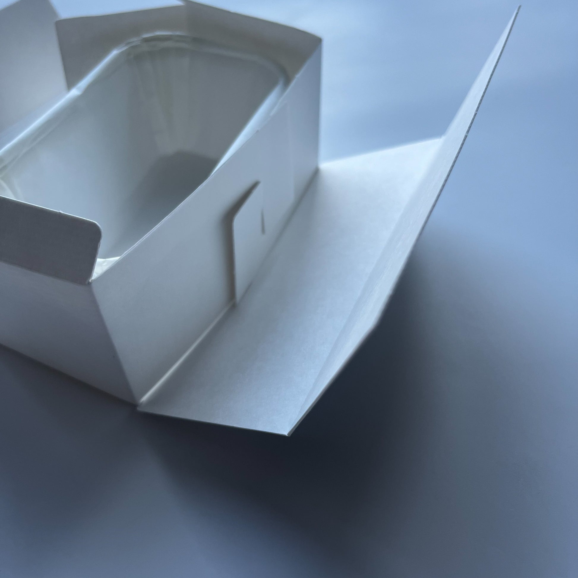 素材は森林の破壊や劣化に繋がらないよう管理された原料で製造したマイクロフルートのダンボール紙。充分な強度と軽さ、省資源を実現しています。