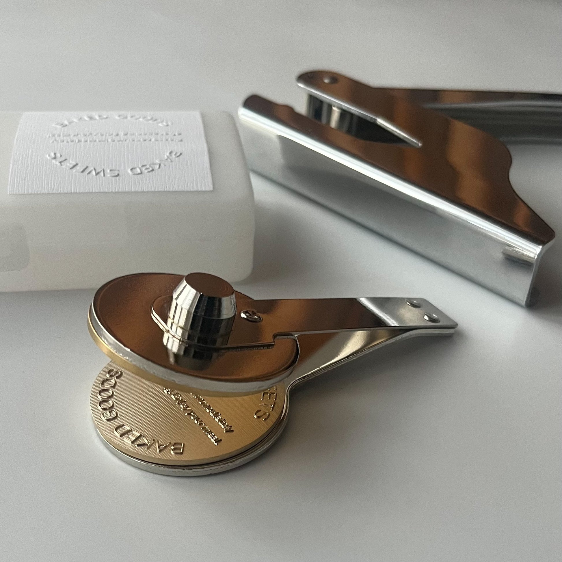 通常のオリジナル製作で作るエンボッサーは受付からお届けまで納期2〜4週間かかりますが、ほしいと思った時にすぐ購入できるエンボッサーをご用意しました。