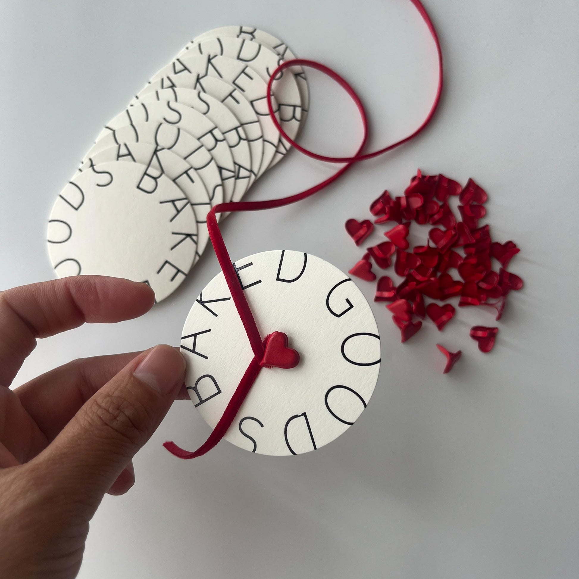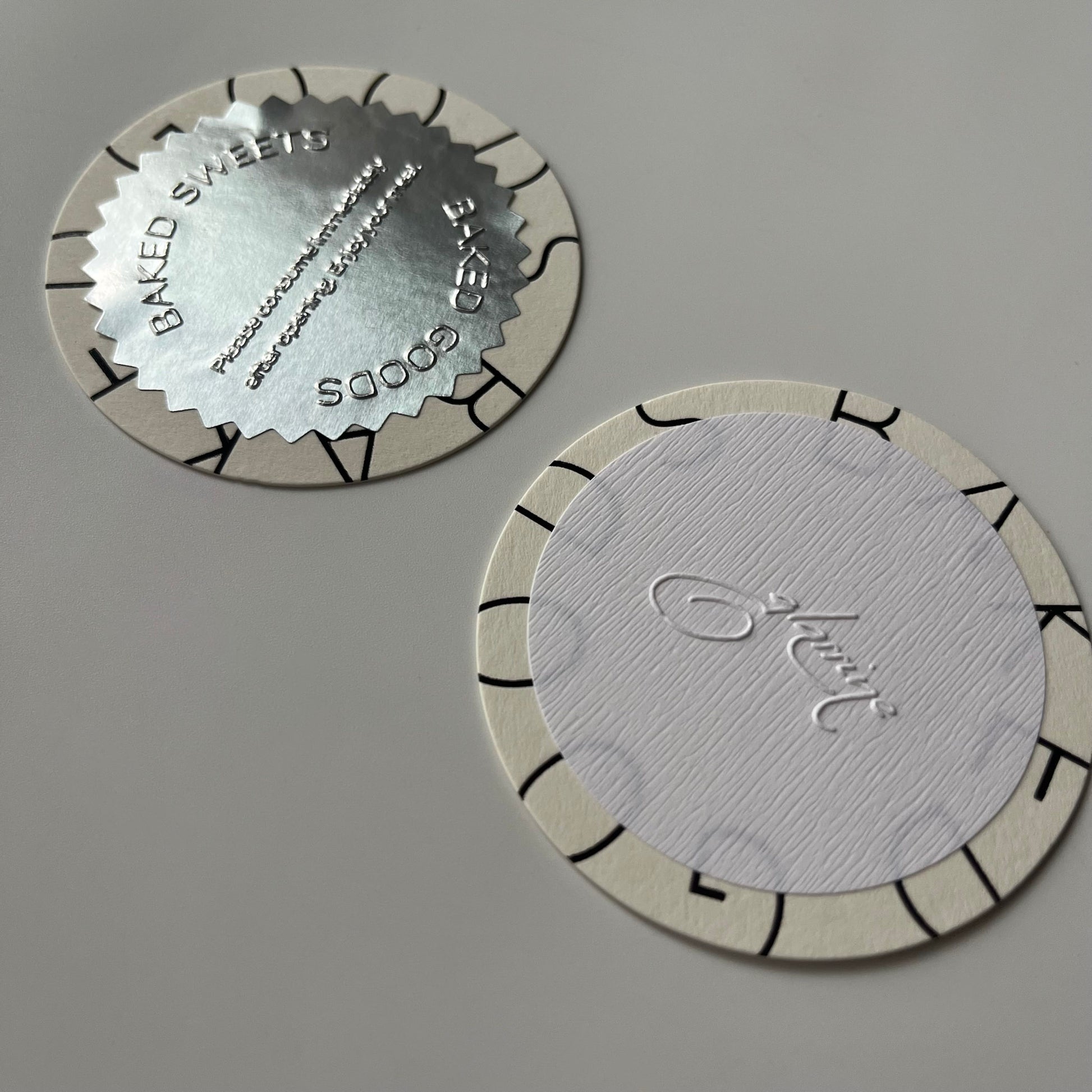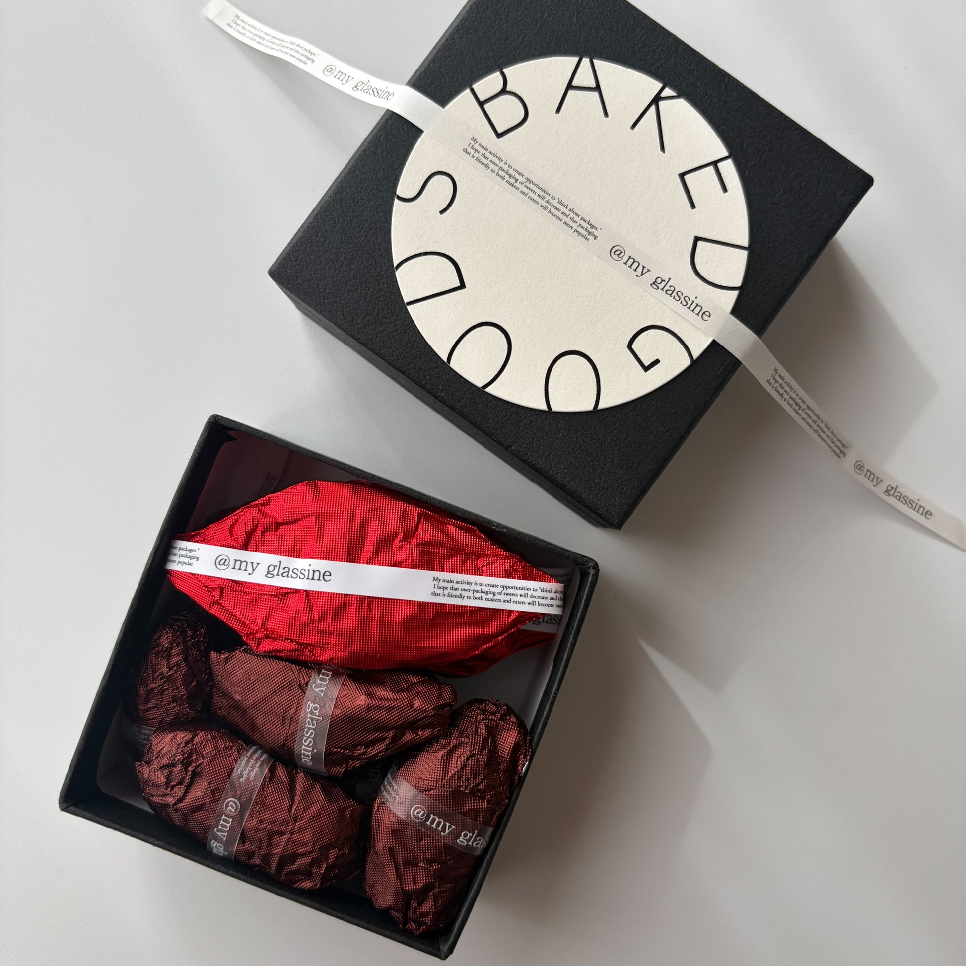 お菓子屋さんでは金台紙が一般的ですが、是非焼き菓子のラッピングに使ってほしい〜!想いから"BAKED GOODS "(訳 焼き菓子) を箔押したデザインに仕上げました。