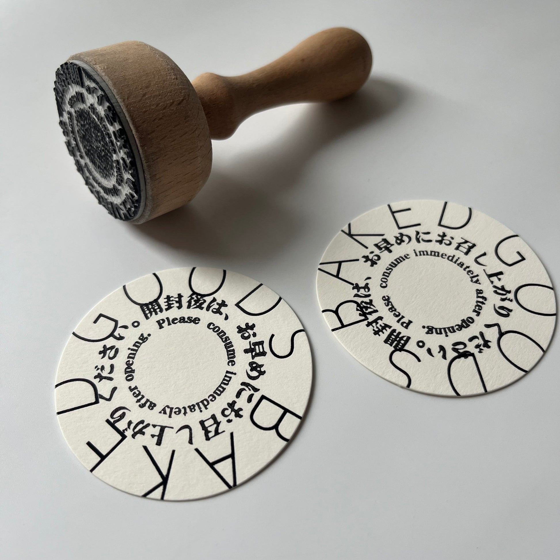 賞味期限やメッセージ、お店のロゴスタンプを押すとまた違った印象になります。
