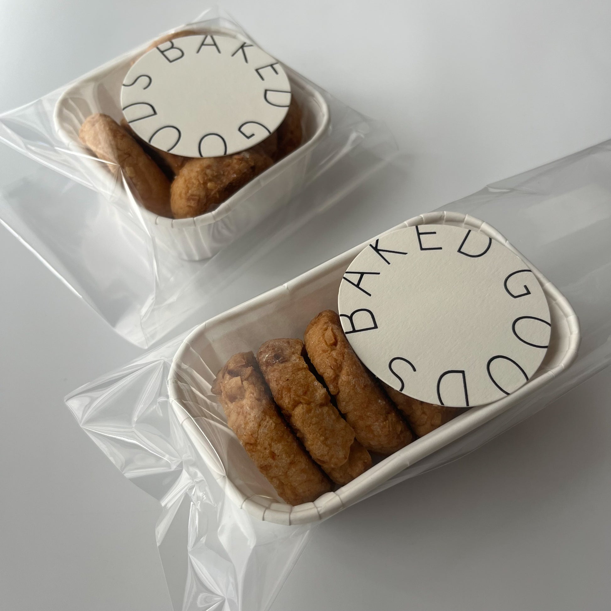 仕様用途を焼き菓子に絞ることで、ラミネート加工は光沢つるつるではなく薄めのマットコーティングとしナチュラルに馴染む仕様です。