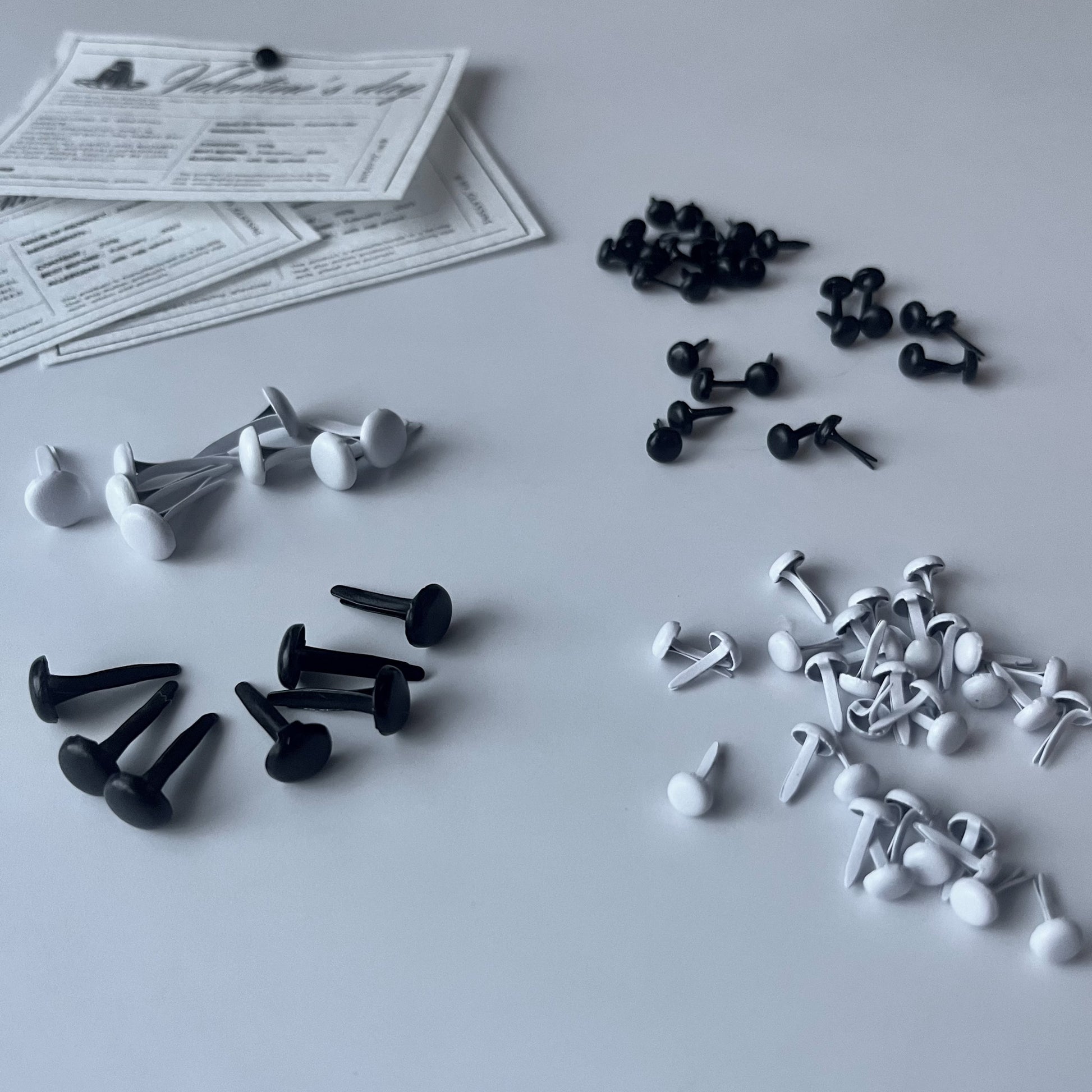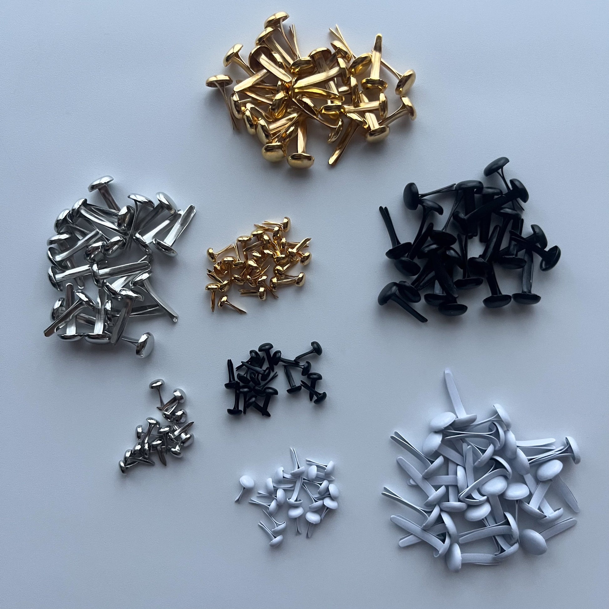 極小サイズは足がそんなに長くない為画像にあるような薄いものや小さなものの留め具として使用されることをオススメします。