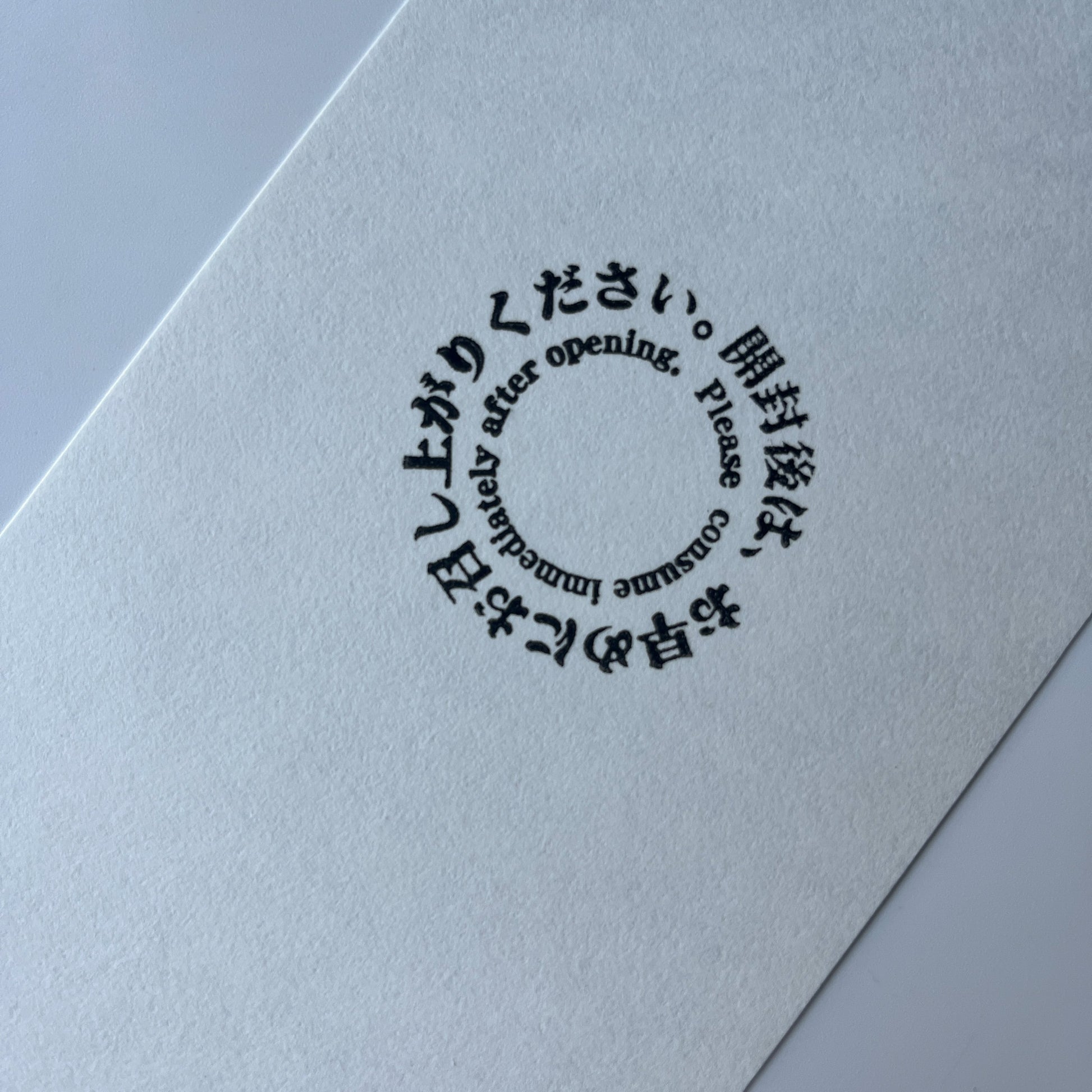 お早めにお召し上がりください木製スタンプ_直径4㎝